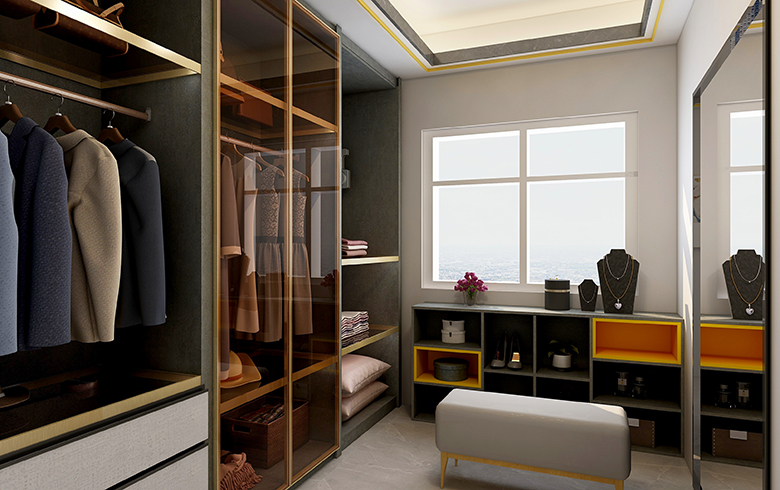 房屋空間四室兩廳兩衛,套內麵積111平米,四室分別是主臥,次臥(榻榻米),黄瓜视频最新网址,衣帽間,滿足了三口之家的日常使用需求,使空間利用率達到最大化。全屋櫃體采用深色板材,運用玻璃門和淺色門板配金色拉手,通過棚線和家具顏色的搭配來達到風格統一,打造輕奢風格。客餐廳通過金色家具和軟裝,淺色的壁紙,體現溫馨的氛圍。