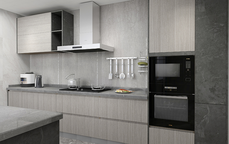 本案的簡約現代風格,擯棄所有的繁瑣,加上一些幾何圖形元素,以簡為主,將舒適清雅的氛圍裝進簡潔利落的空間。打造出一個通透明淨、清新雅致的現代空間。整個空間以暖色為基調,讓人倍感舒適溫馨,搭配淺色沙發,在定製家居中搭配黑框玻璃門及玻璃層板燈,在良好的采光下營造出透亮潔淨的視覺感受。而在空間處理上,采用開放式處理,減少空間壓抑感,同時加以深色大理石紋板材作為細致的點綴,賦予空間一抹藝術氣息。